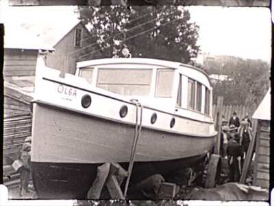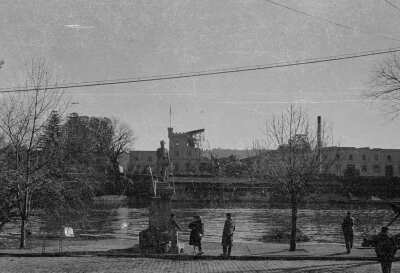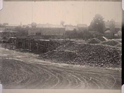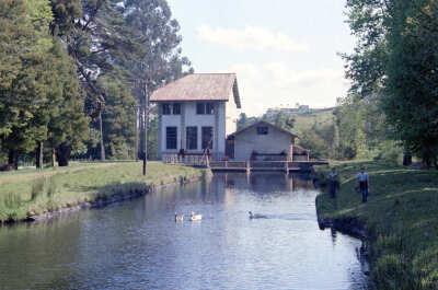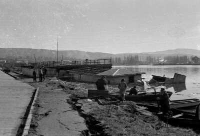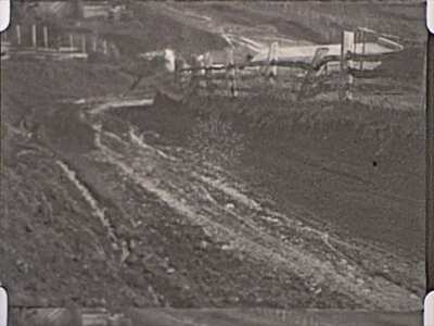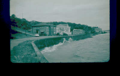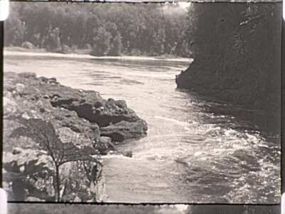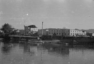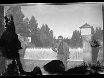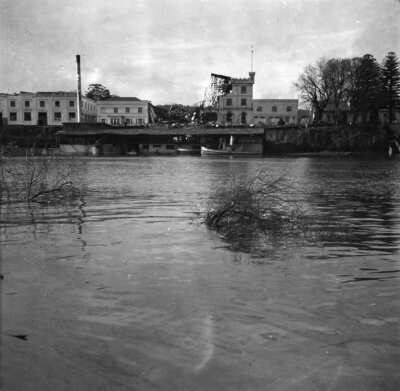 Vista de la represa de la Turbina del Llollelhue durante la avenida del rio en 1922