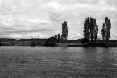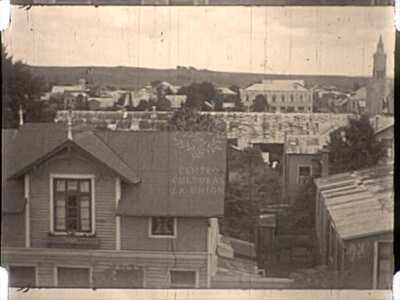 Vista desde las alturas de la planta hidroeléctrica del Llollelhue durante la avenida del río en 1922