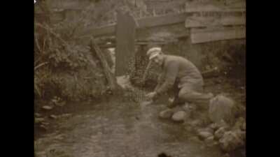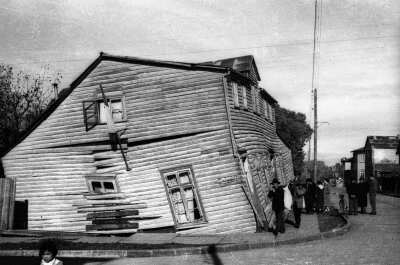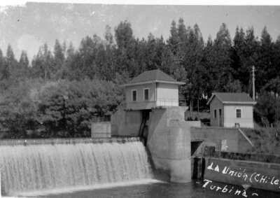 Vista de la Turbina del rio Llollelhue durante la gran avenida de 1922