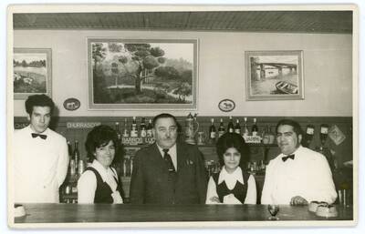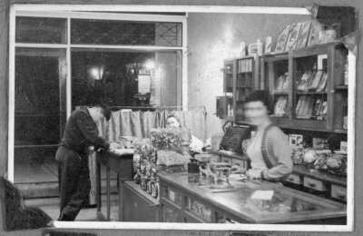Eduardo Fernández Veas posa junto a su nieto Matías Reyne Fernández en el mostrador de la Farmacia Fernández de Río Bueno