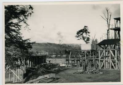 Vista de la represa de la Turbina del LLollelhue durante los trabajos de ensanche para la instalación de la segunda turbina