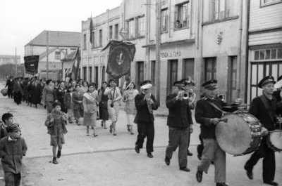 Registro de audio del Acto del Día Internacional de Los Trabajadores 1 de Mayo 1984. Discursos de Doris Díaz representante de Mudechi, Alberto Paillacar, a nombre de la comisióón de Derechos Humanos, contexto de aplicación de ley antiterrorista. Discurso de dirigente de los Profesores. Mandan saludos a los presos políticos de Osorno y Valdivia. Saludos a los familiares de detenidos desaparecidos. Saludos al campamento Bernardo O'Higgins por conquistar su derecho a la vivienda.